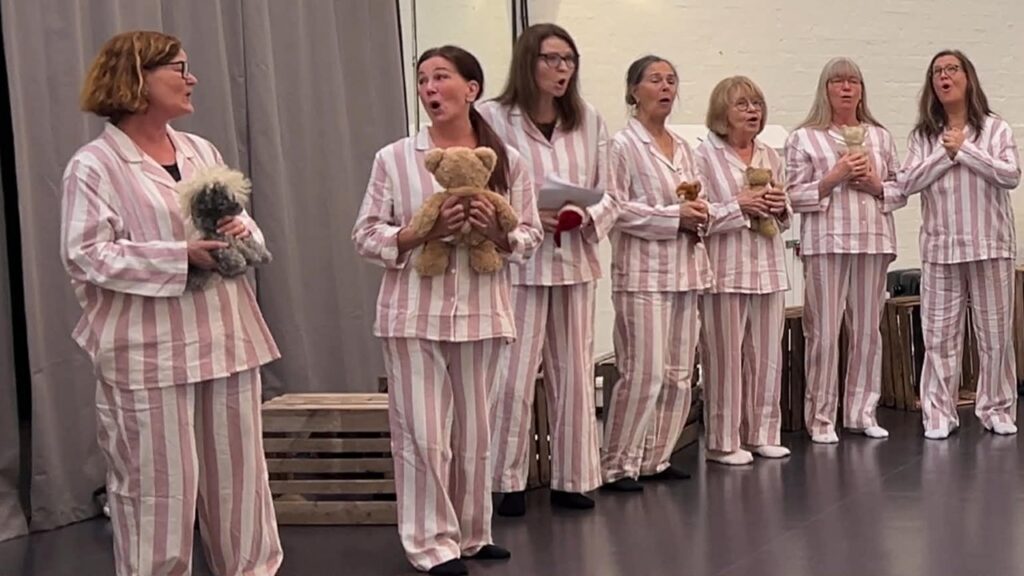 I denna nykomponerade familjeföreställning, möter vi en fyrstämmig kör i pyjamas, en varm och närvarande berättare och ett gäng skickliga musiker som tillsammans skapar en värld där både barnens monster och de vuxnas bekymmer får ta plats – och förvandlas till musik, humor och tröst.